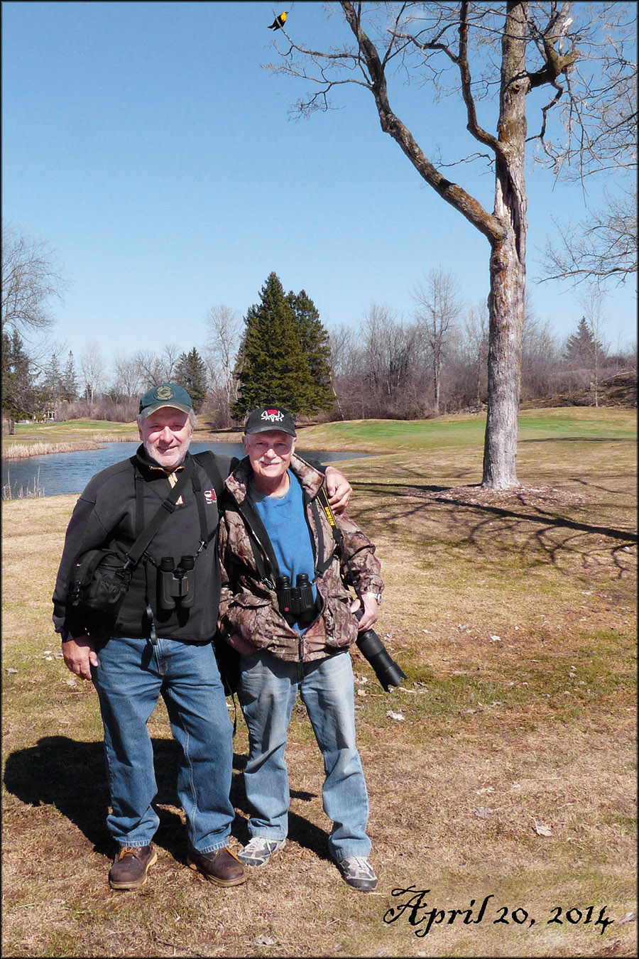 We ran into Jeff Skevington, his Dad and Son, along with Anouk Hoedeman who had been searching for the bird without luck and were just leaving to search the neighborhood. Rick and I continued down along the 9th fairway and back but there was no sign of the bird. I was the last in line and heard a call coming from the wet area I was familiar with but knew it wasn’t a Grackle, Starling or a RW Blackbird. The bird flew across to my left, landing on a tree top in the middle of the fairway, I called to all those ahead of me. We all had spectacular looks at this bird. #237 for Ottawa was in the books, I am still way behind Rick who is at 323 but I am catching up, very slowly.