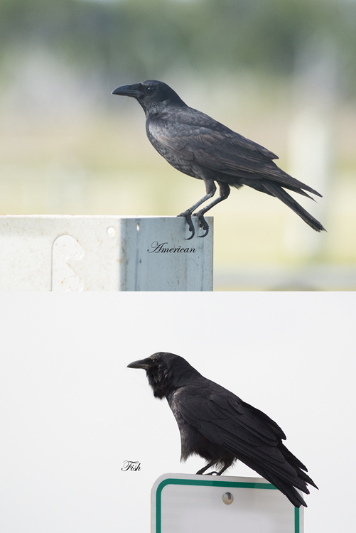 I’ve always wanted comparison images of the Common Crow and Fish Crow, these birds look similar but are easiest identified by their calls. Close attention to the Fish Crow bill and leg length can help if they are not calling,