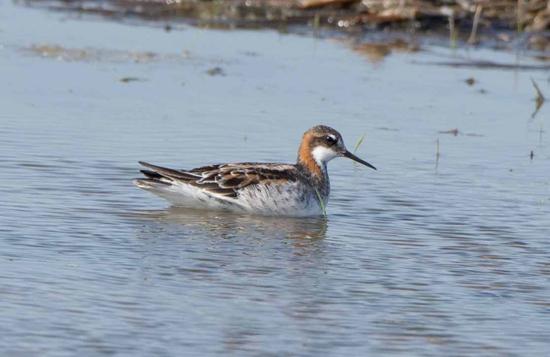 On our way home we checked the shorebird habitat on Brophy, finding a Red-necked Phalarope feeding in the shallows.