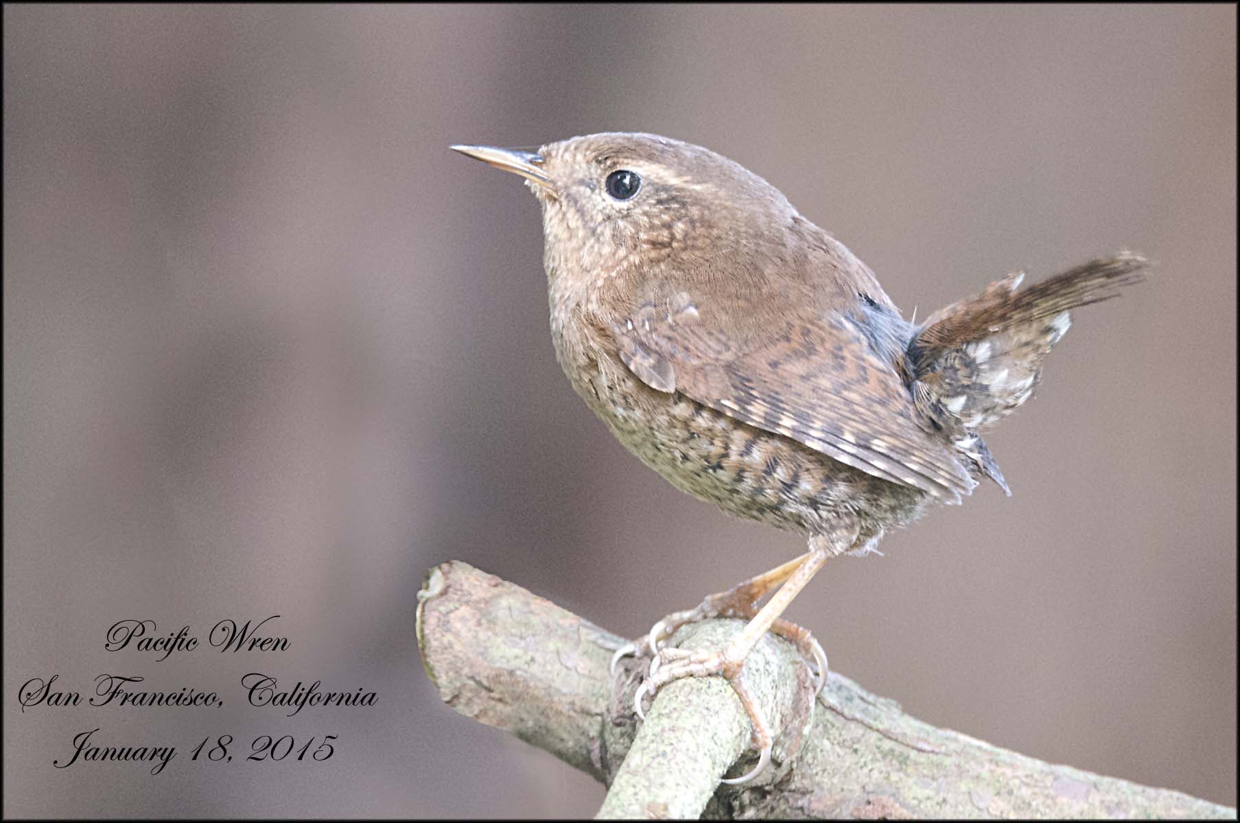 With time dwindling, I decided to go across the street to the Botanic Gardens. I was told by a local birder, that people had been seeing and hearing, a Pacific Wren in the Redwood Garden area. I quickly walked (ran) over there, with instructions that if the bunting showed up text me.