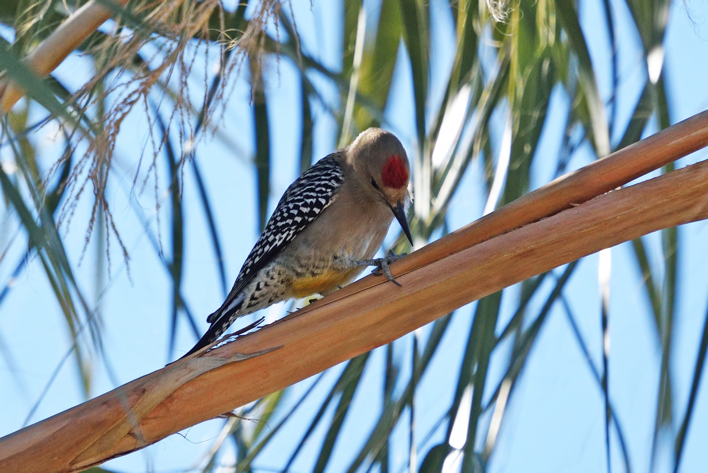 We chatted about birds, birding and travels for 4 hours, watching and hoping the Oriole would come back. At 11:40am the bird just appeared in the palm tree, and proceeded to feed for about 15 on berries. New ABA Bird – Streak-backed Oriole. Thanks Ian and Mike for keeping me company.